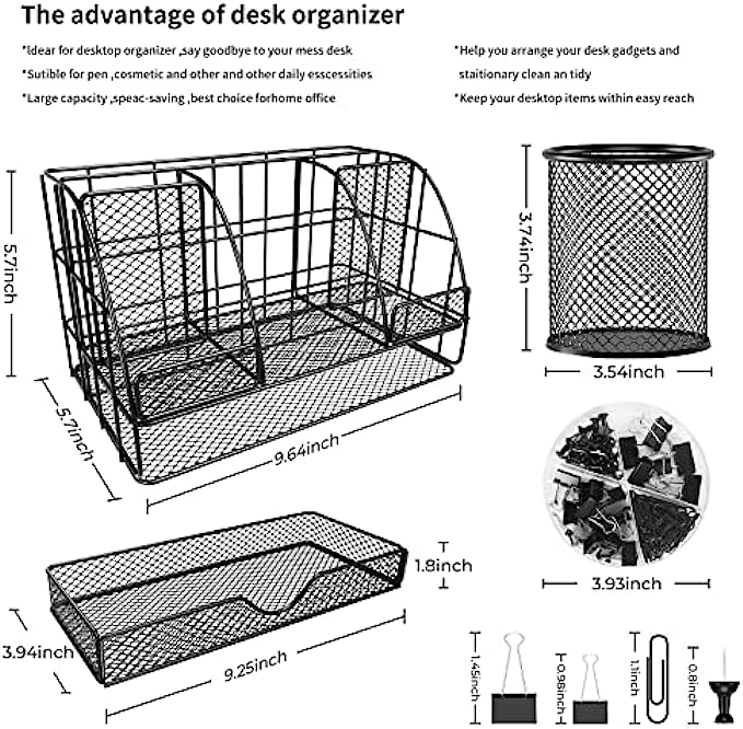 • 【Unique And Stylish】: Desk organization use black metal finish design, simple and stylish, easily match other office accessories and surrounding decorations.It is suitable for home, office, classroom, etc; Nice on desktop, living room, bedroom dresser, coffee table, shelf, etc.