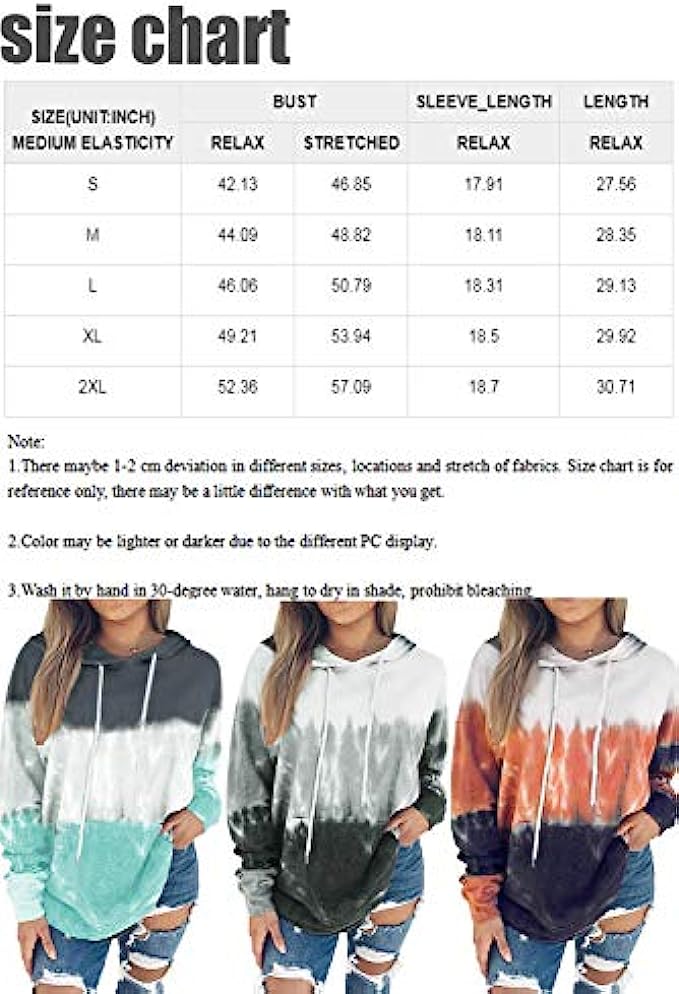 • Garment Care:Hand wash,machine washable,line dry,low iron when necessary,do not bleach;Package Contents:1 x Hoodie Sweatshirt Tops