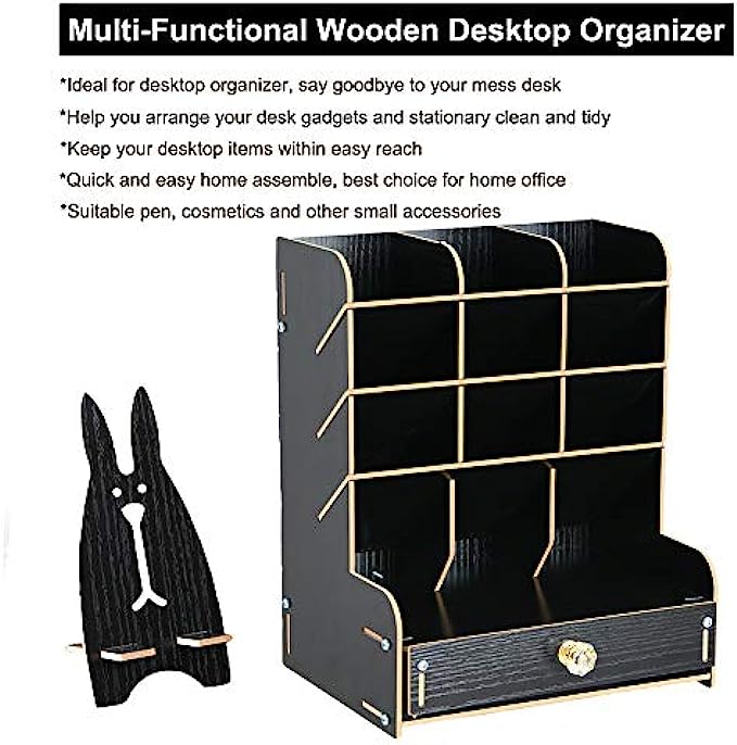 ✎【CREATIVE DIY DESIGN】: This Desktop organizer needs to be assembled By Yourself, it's full of the joy when you assemble the desktop organizer . Installation according to the instructions or video is very simple ,made up of 15 boards to assemble,fix it with screws. A single man can easily assembly it within 20 minutes. Instantly turn it into an eye-catching stationary.