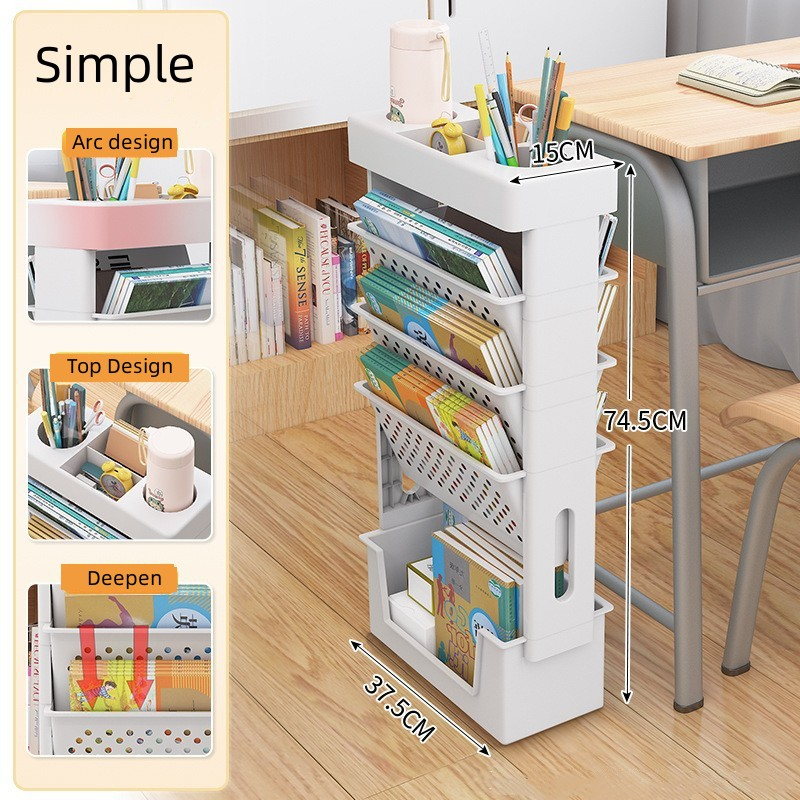 Movable Bookshelf Book Storage Shelf Side Table with wheels Student Book Desk Bookshelf Office Desk Bookshelf